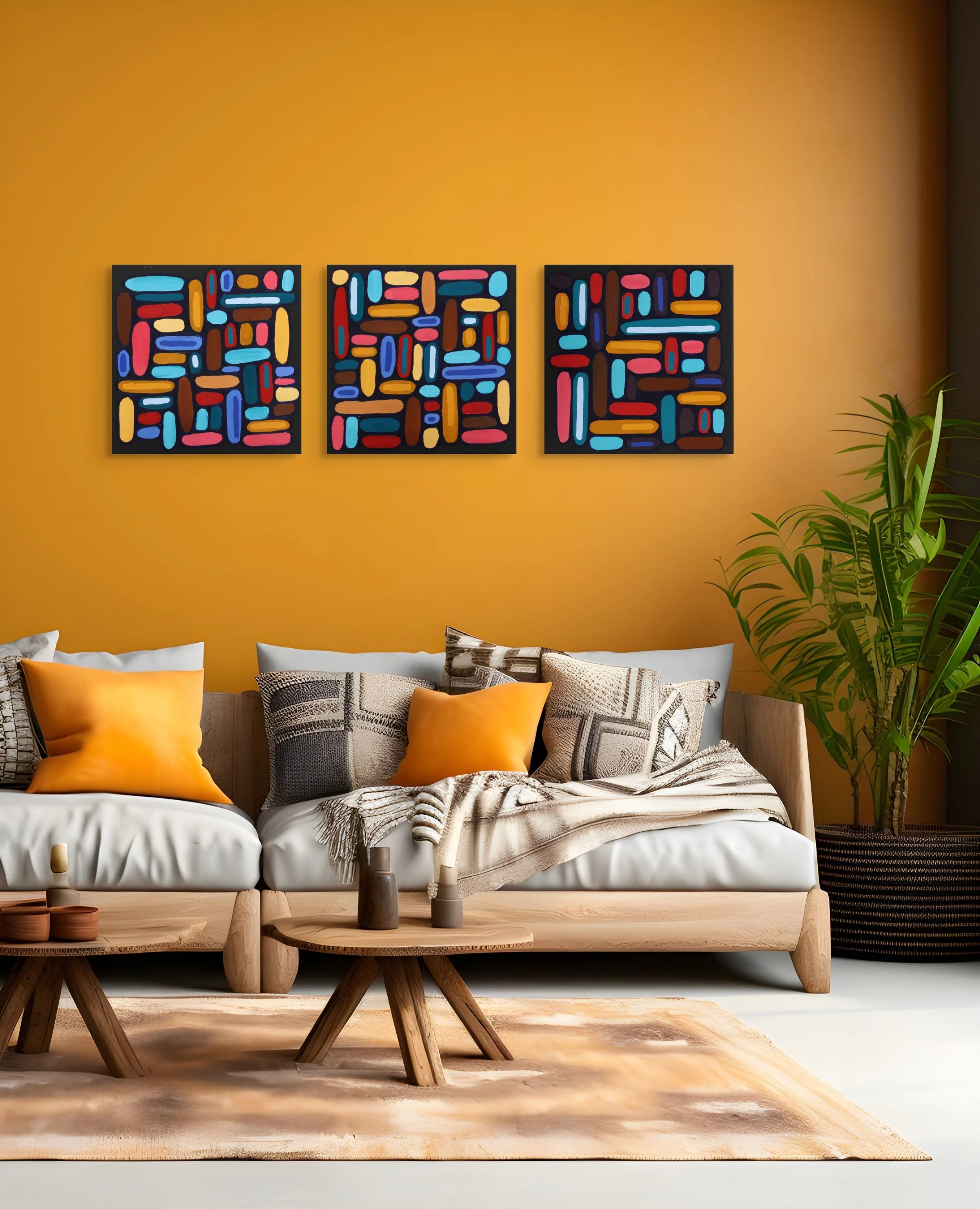 Left: Verse I and II: The morning light awakens color, brushstrokes stirring in first silence. Colors whisper, painted moments suspended in time.